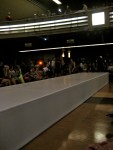 I decided to go for a fairly girly look for me and very colourful compared to my usual – black, with the Meows Meows (Miu Mius) in tow of course! And I guess it worked! One girl actually came up to me and told me a group of her friends told her to go find me and see what I was wearing, I’m pretty sure I almost hugged her and asked her to be my best friend forever; see how easy it is? I was accompanied by my mother since the invite was under her name and since it said non-transferable we didn’t want to risk it by not having the real Dr. Davis, though I’ve passed for a doctor before. She refused to pose, so I just kind of snapped randomly – hey, I tried. I also have my mom to thank for the hustle she showed when the doors opened, I looked around and she had two front row seats: thanks, mom. A cool rapper/singer/myvoicedoescoolthings-er opened the show and she was as I said, very cool. My first thought was “she’s way too cool and unique for this”, but it worked with the whole vibe. I was snapping like crazy, I swore to my mom it was for the blog, but she’s right I just wanted a better look at the clothes for later: thanks again, mom. I’m not going to post them all as there were just under 70 looks…which is a lot, and this is just the beginning of Aritzia’s fashion shows so I don’t want to give it all away, so I’ll just post some favs.